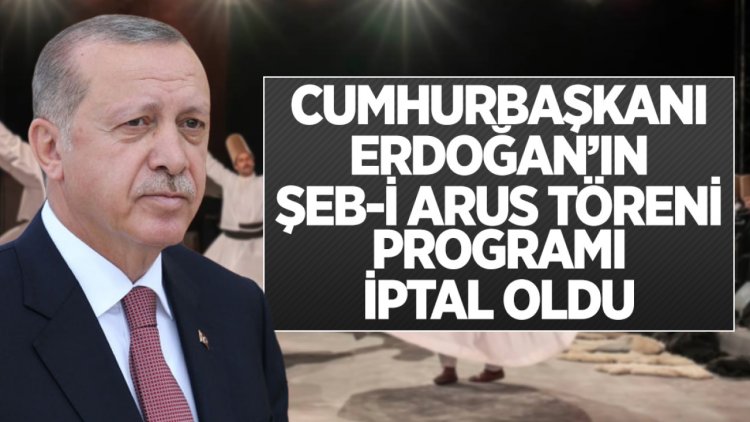 Cumhurbaşkanı Recep Tayyip Erdoğan'ın, Mevlana'nın ölümünün 750'nci yıldönümü nedeniyle Konya'da düzenlenen Şeb-i Arus törenlerine katılacağı programı iptal oldu.