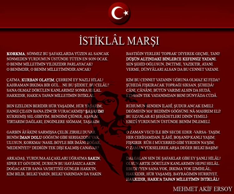 İstiklâl Marşı, 105 yıldır Türk milletinin bağımsızlık, özgürlük ve birlik sembolü olarak yaşamakta, genç kuşaklara milli değerleri ve tarih bilincini aktarmaya devam etmektedir.