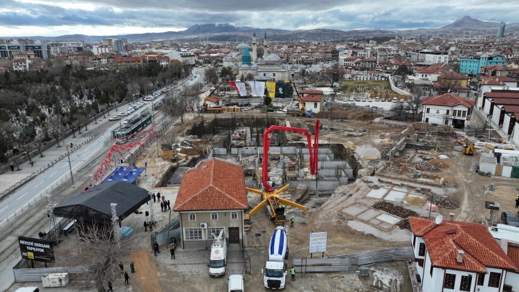 Konya Büyükşehir Belediyesi, Karatay Belediyesi iş birliğiyle yürütülen “Mevlana Türbesi Arkası Kentsel Yenileme Projesi” kapsamında, şehrin kültürel ve manevi mirasına değer katacak Mevlevi Dergâhı’nın temelini düzenlenen törenle attı.