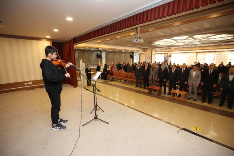Salonu dolduran aileler ve öğretmenler, sahneye çıkan anaokulu öğrencilerinin heyecanına ortak oldu. Program, öğrencilerin davul eşliğinde okudukları manilerle başladı. Ardından Mehmet Beğen Ortaokulu öğrencisi Hakan Köş, kemanıyla İstiklal Marşı’nı seslendirdi.