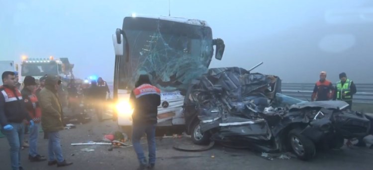 Kaza nedeniyle otoyolun İstanbul yönünde ulaşım durdu. Ekipler, yoğun sisin etkili olduğu bölgede araçları yoldan kaldırmak için çalışma başlattı.