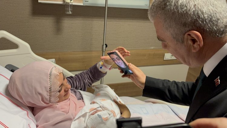 Anneyi hastanede ziyaret eden Kony Valisi İbrahim Akın, Zümra bebeğin Adana'da uzman çavuş olarak görev yapan babası Emre Yorgancı'yı cep telefonundan görüntülü arayarak tebrik etti.
